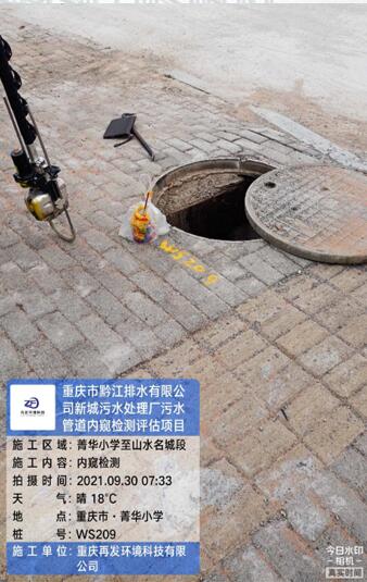 项目位于重庆市黔江区,本次检测主要检查管道内部是否存在破裂、变形、沉积、腐蚀、错位、脱节、堵塞、渗漏、等状况。