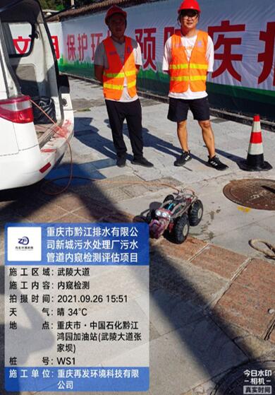 项目位于重庆市黔江区,本次检测主要检查管道内部是否存在破裂、变形、沉积、腐蚀、错位、脱节、堵塞、渗漏、等状况。
