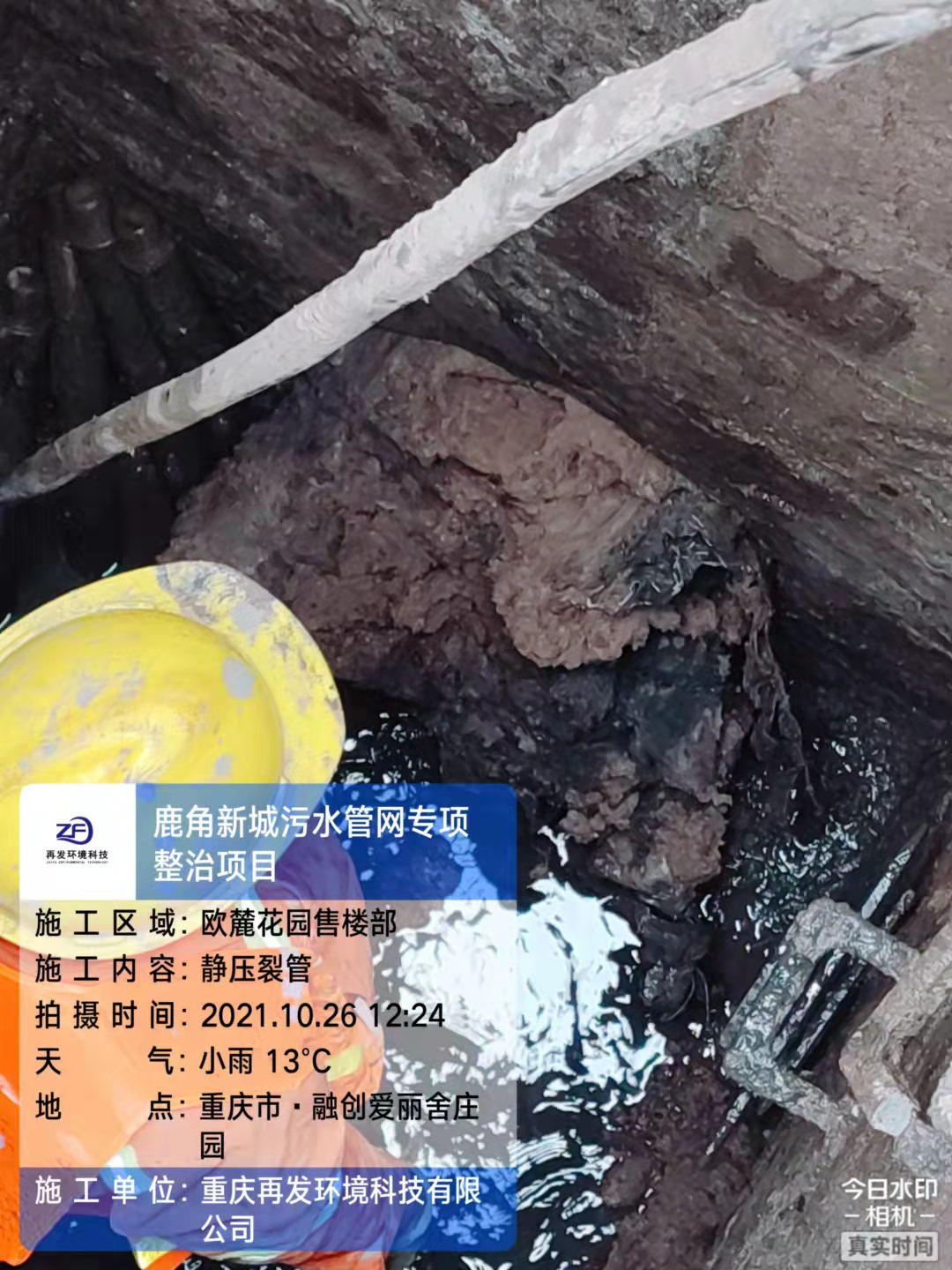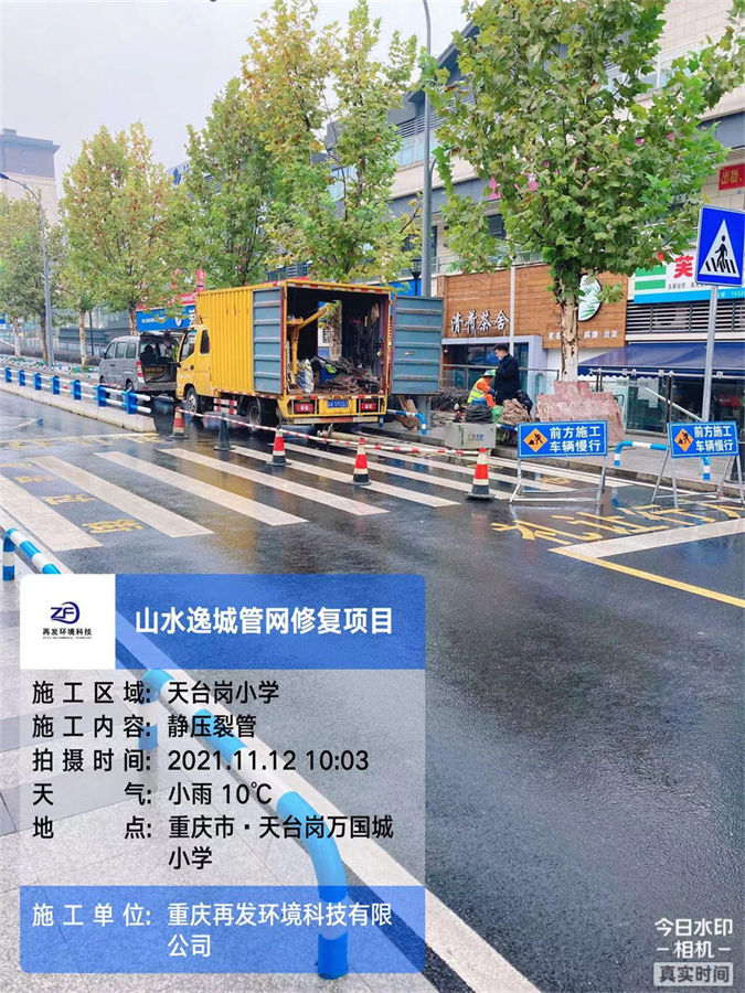 短管连接修复技术是把许多短管连接在一起,形成一条整体管道的工艺,用裂管施工方法,新管道内径不缩小(如果现场条件允许,可以比旧管道管径更大),不挖工作坑、不开挖地面、不破坏井室的情况下,利用现有井室,把两个井距间的排水管道整体更换。