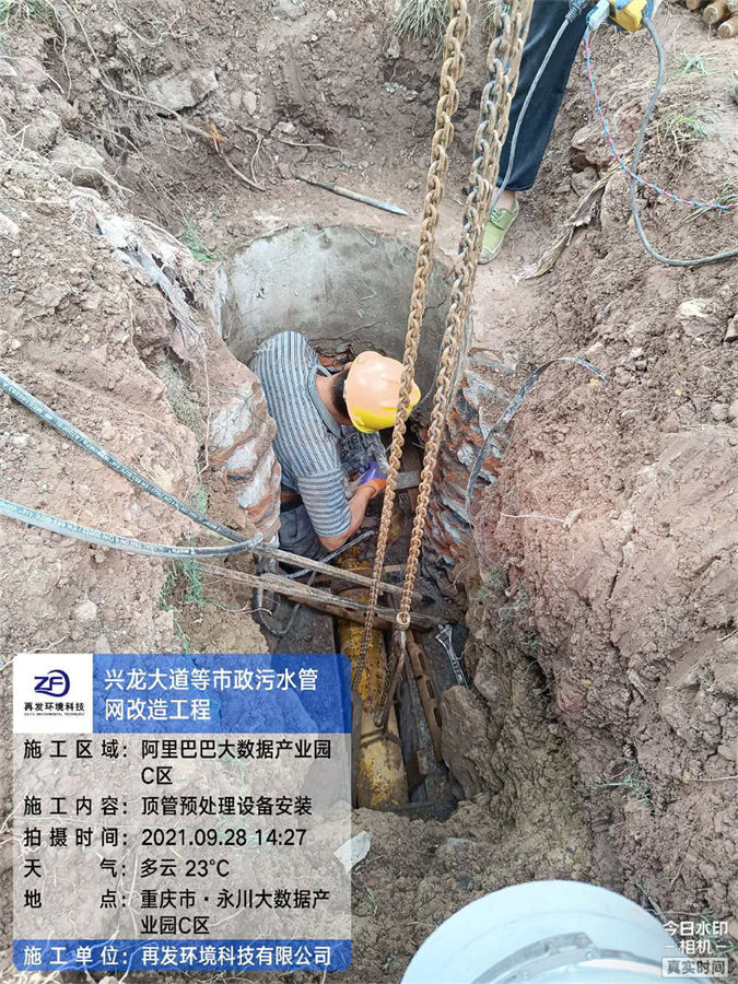 该项目位于重庆市永川区,针对管网的具体缺陷情况,主要采用短管置换工艺。