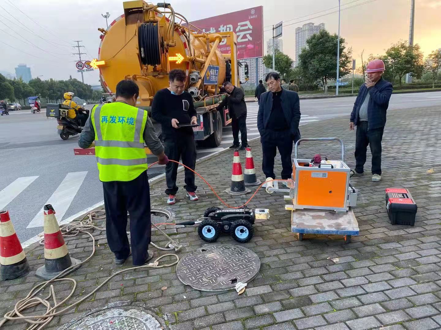 技术人员根据现场情况,采用气囊封堵提排的方式降水,再进行CCTV机器人内窥检测。